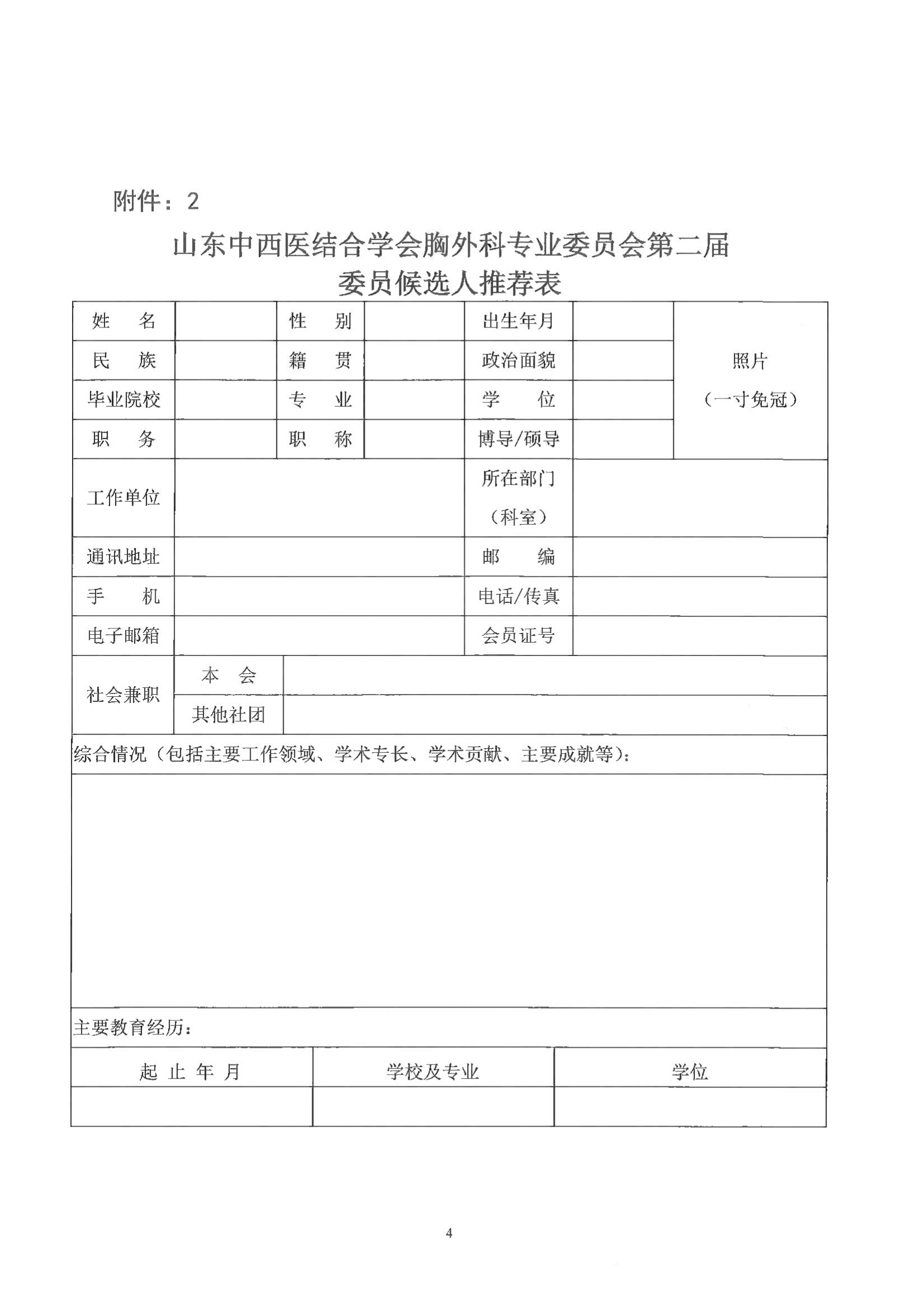 关于推荐山东中西医结合学会胸外科专业委员会第二届委员候选人的通知