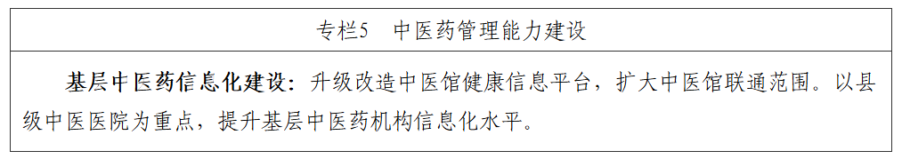 15.加快基层中医医疗服务信息化建设。落实《全国基层医疗卫生机构信息化建设标准与规范》和《全国医院信息化建设标准与规范》要求,提升基层医疗卫生机构中医药信息化水平,推进以电子病历和医院管理为重点的信息系统建设,支撑县级中医医院、基层中医馆、村卫生室实现信息共享和远程支持,丰富中医馆健康信息平台服务种类,扩大平台涵盖范围。鼓励三级中医医院牵头组建互联网医共体,为社区卫生服务中心中医馆中医药服务提供信息化支持。2025年,所有中医馆接入中医馆健康信息平台,实现县级中医医院牵头的医共体内信息互通和管理信息共享。